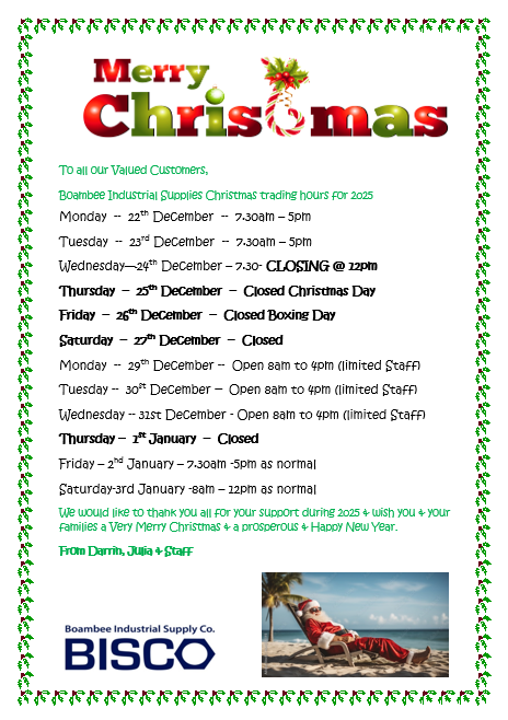 Boambee Industrial Supply Co. carries the following product ranges…